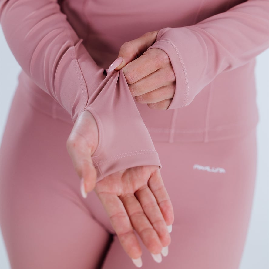 - Daumenöffnungen zum Fixieren der Strickjacke