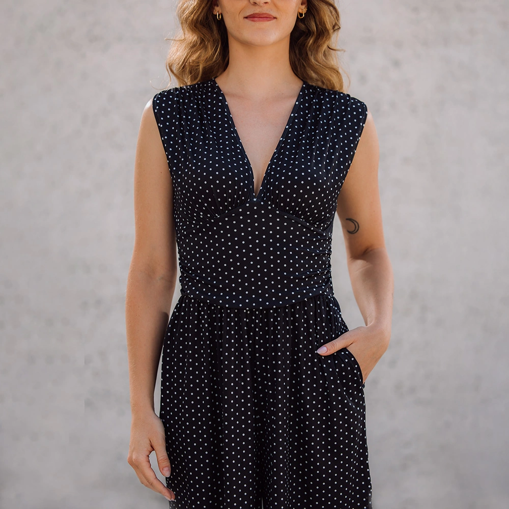 - Gefalteter Bund – betont die Taille und sorgt für Textur und visuelles Interesse