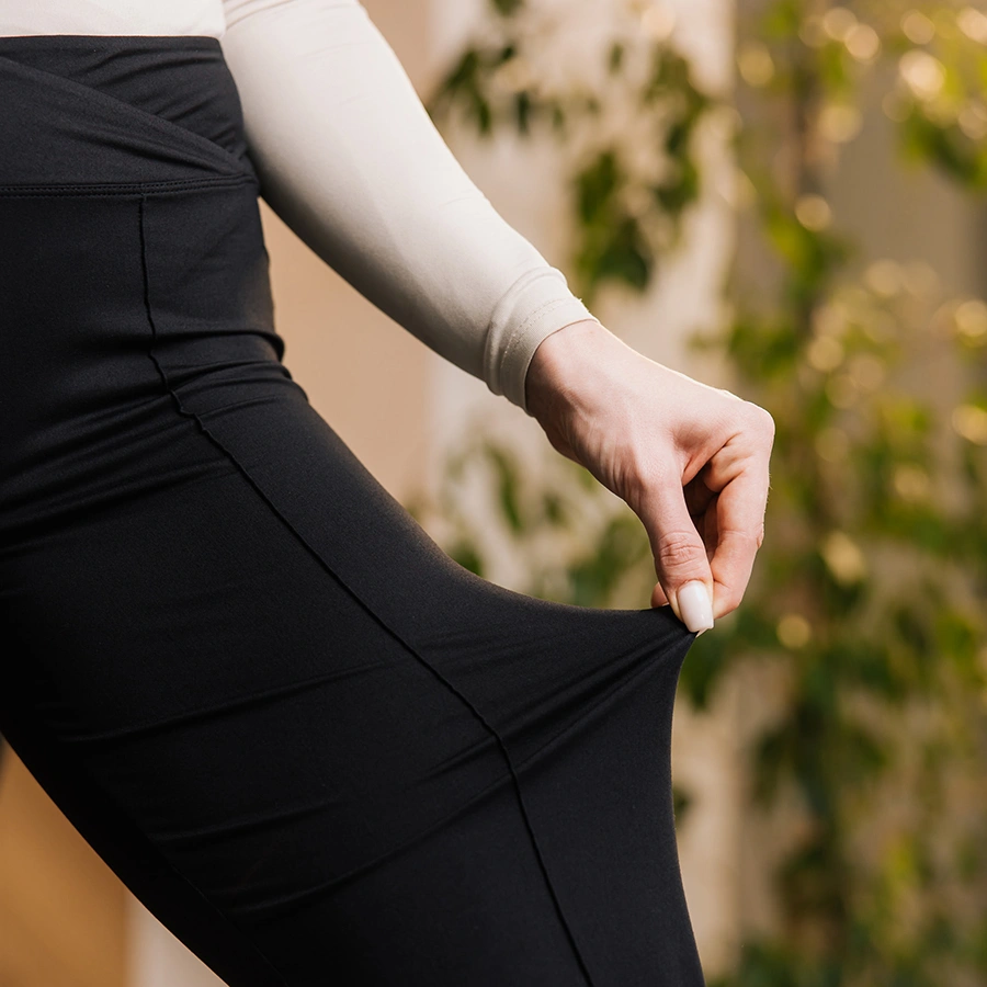 - Rivoltare i leggings portando il lato interno all'esterno prima del lavaggio