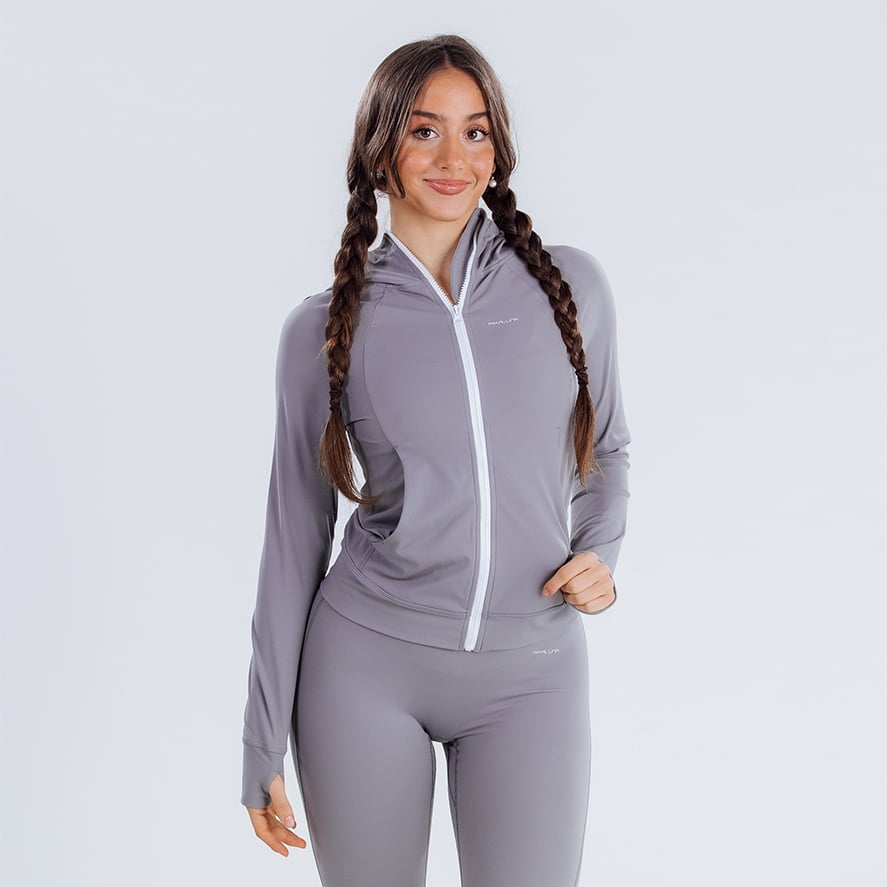 Leggings SEAMLESS con scrunch discreto, zip-up cropped e reggiseno con spalline a T per uno stile raffinato.
