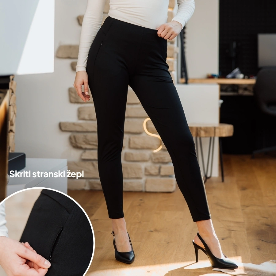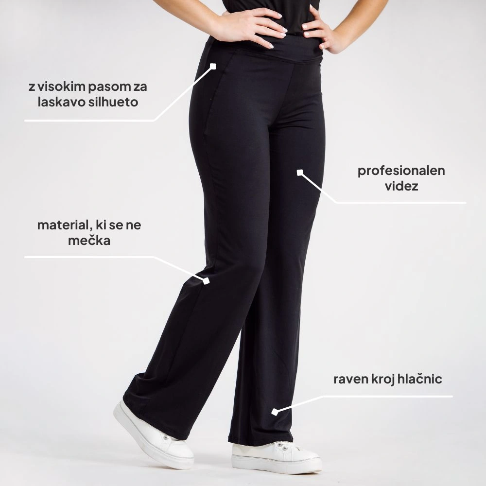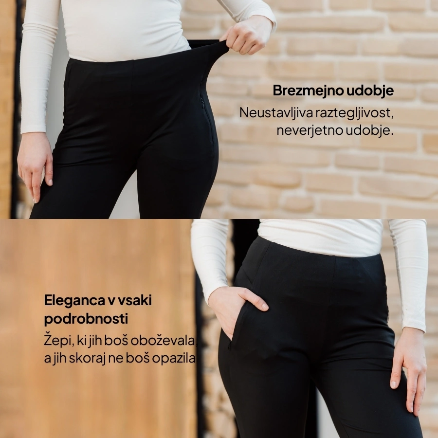 Ustvarjene na način, da poudarijo ženstveno silhueto ter zagotavljajo urejen in profesionalen videz. Z visokim, elastičnim pasom in lahkim materialom omogočajo udobje skozi cel dan.
