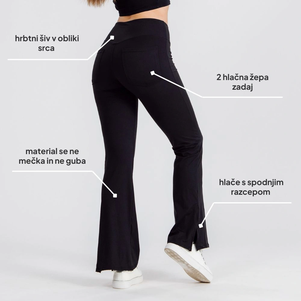 Imajo elegantno razširjeno spodnjo linijo z razporkom, ki doda pridih prefinjenosti. Z oblikovanim šivom v obliki srca na zadnji strani ter dvema praktičnima žepoma so hkrati praktične in modne.