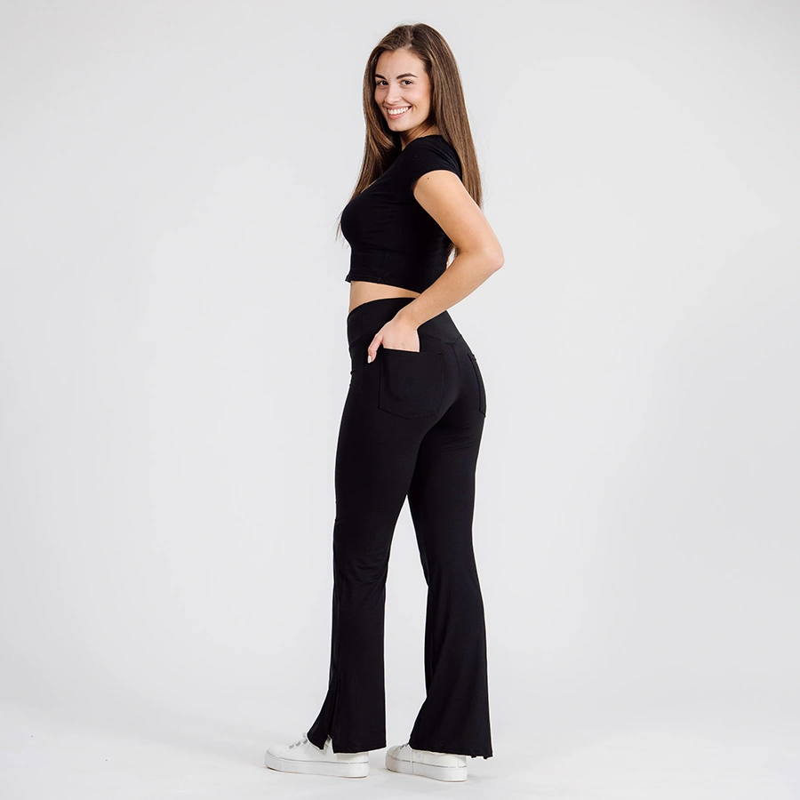 They have a chic slit flare cut at the bottom for that extra touch of elegance. With a heart-shaped back seam and two handy pockets at the back, they’re as practical as they are stylish.